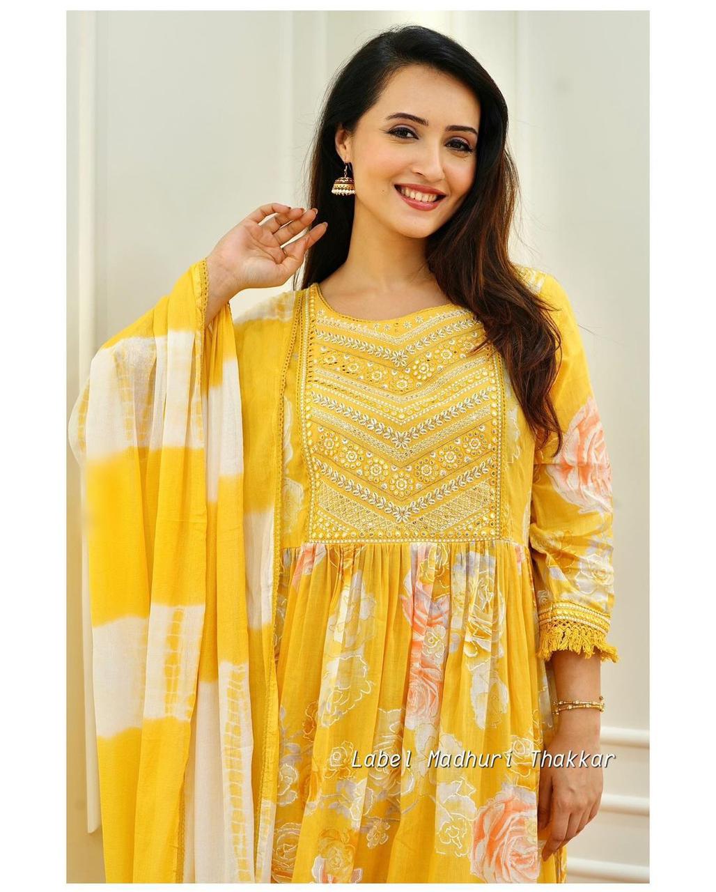 Pure rayon silk fabric with embroidery naira cut kurti with pant with dupatta .