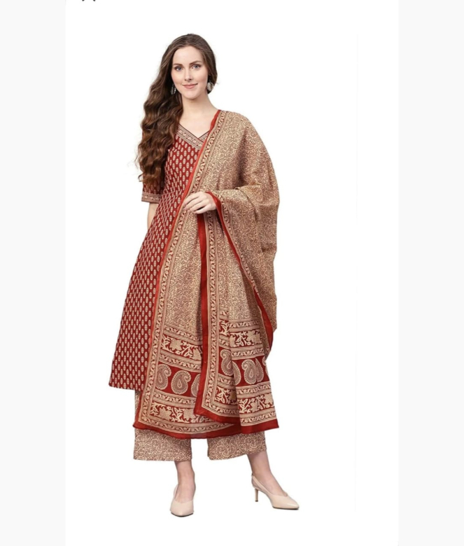 Product: A line kurti with pants and dupatta