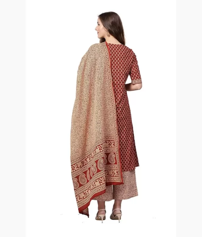 Beautiful cotton printed kurti with cotton printed pants and cotton printed dupatta.