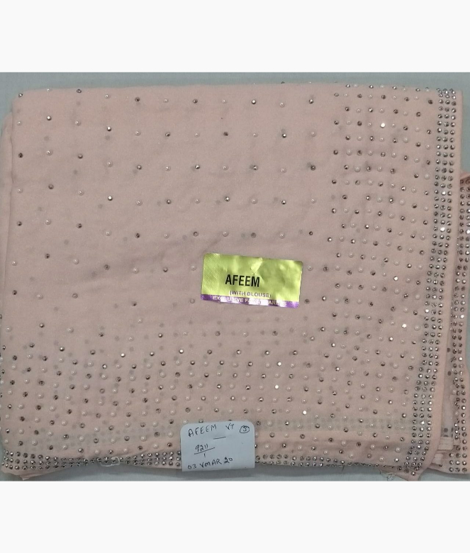 Silver colour sequence and moti work on all over saree.