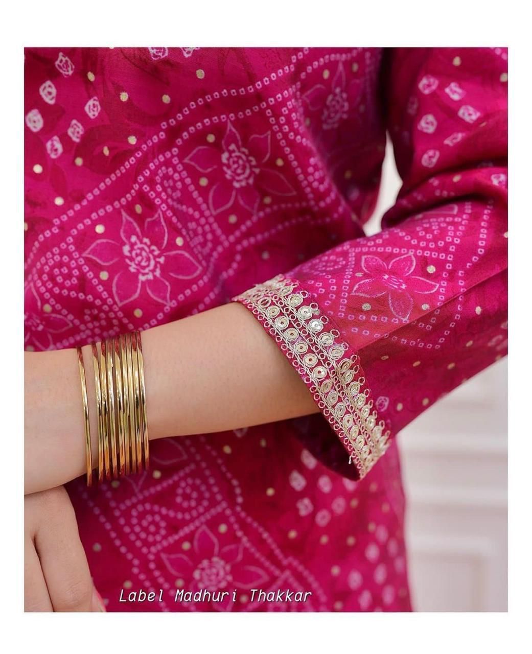 Beautiful afghani suit set which is decorated with finest handwork and bandhani prints. It is made in premium rayon fabric. It is paired with matching afghani pants and chiffon dupatta .