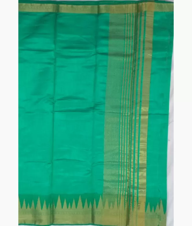 All over plain border pallu design saree. Plain silk saree with golden colour strips design on pallu.