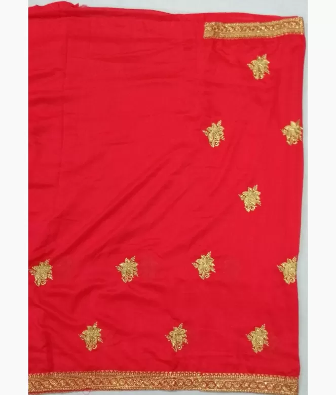 Border is of golden colour zari jaal with cut work design on saree with sequence work. Matching work of saree is on blouse for neck and sleeves
