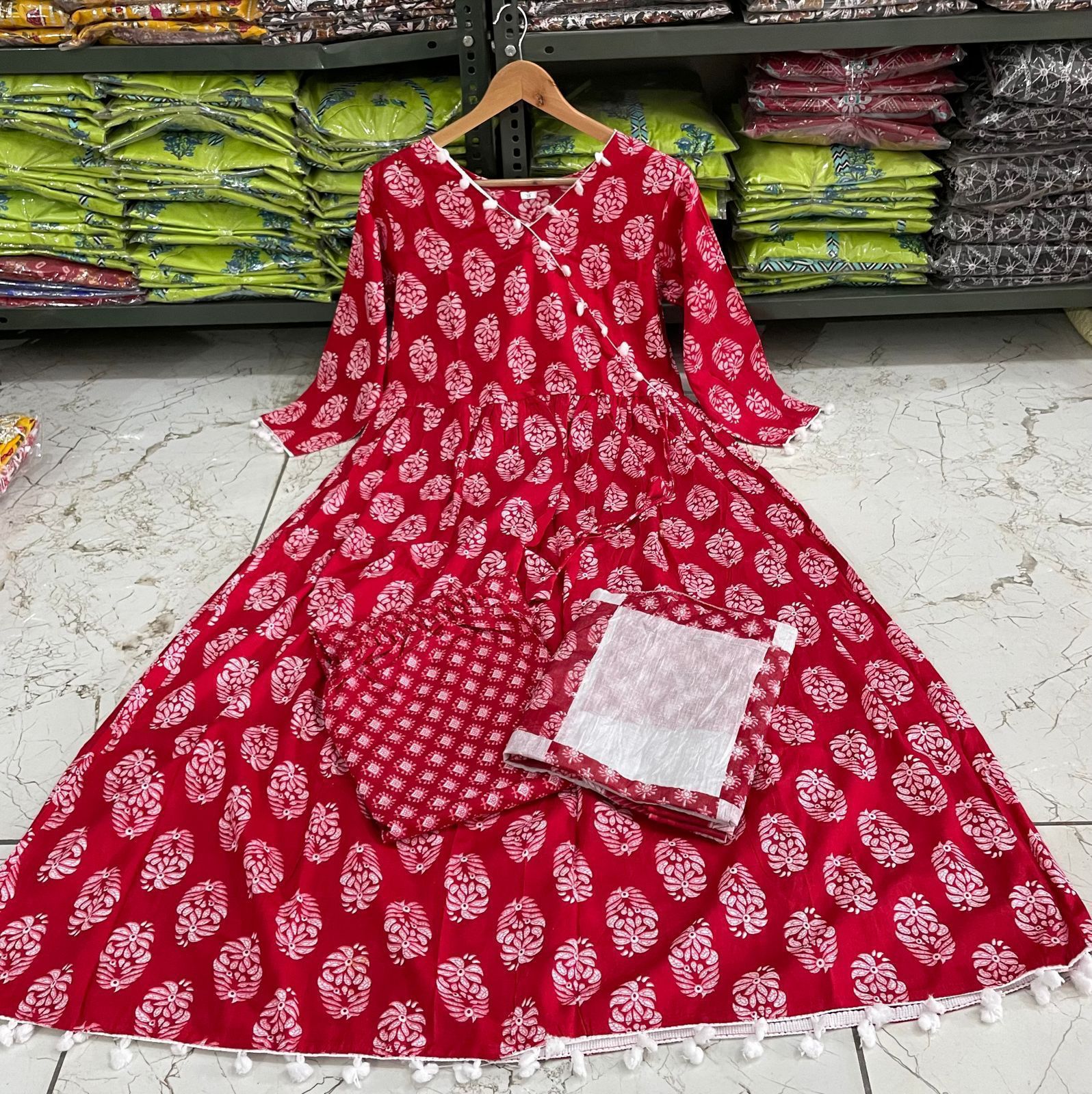 Type -   Anarkali kurti with v neck style with pant and dupatta