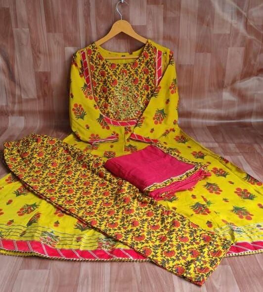 Premium pure rayon party wear dress with all over gotta detailing hand work on yoke .
