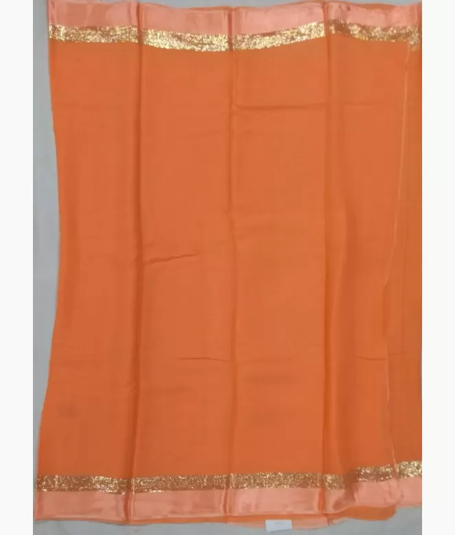 Girlish pattern of rich look design. All over plain saree with golden colour zari and satin patta on both side border pallu of the saree is plain with same border design of saree.