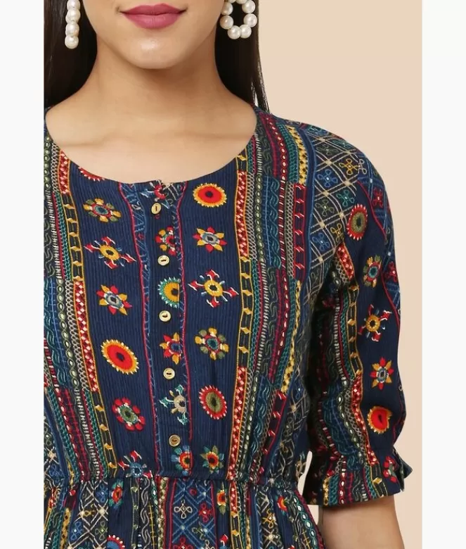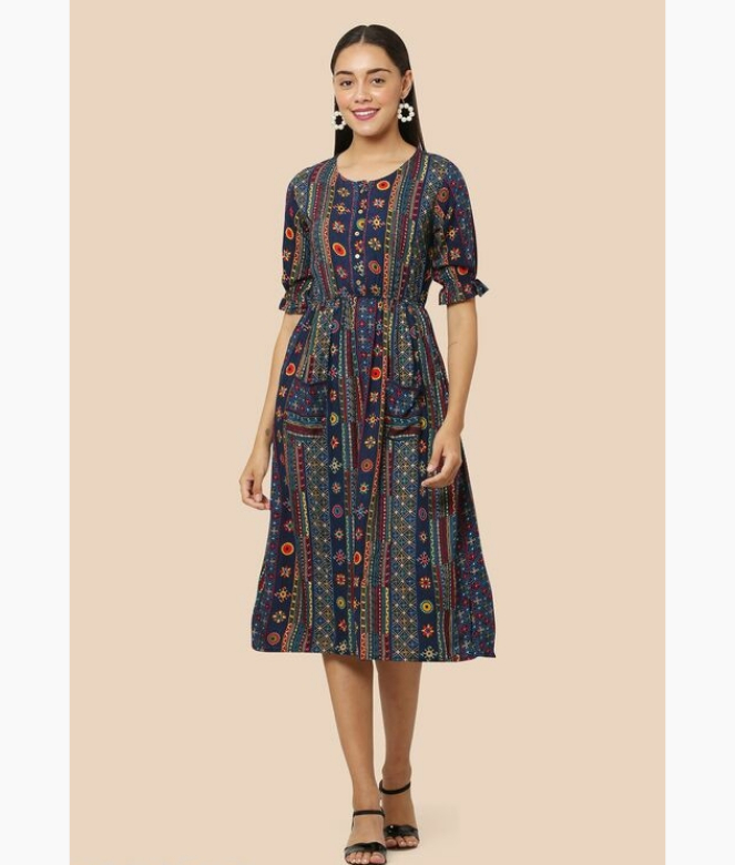 This is another attractive western dress from our collection. The knee-length dress is perfect for casual purposes and daily wear dress. the dress is in mixed print with different color combinations. The dress is perfect for light occasions as well. Compl