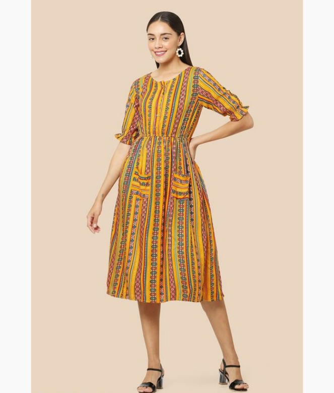This is another attractive western dress from our collection. The knee-length dress is perfect for casual purposes and daily wear dress. the dress is in mixed print with different color combinations. The dress is perfect for light occasions as well. Compl