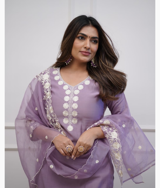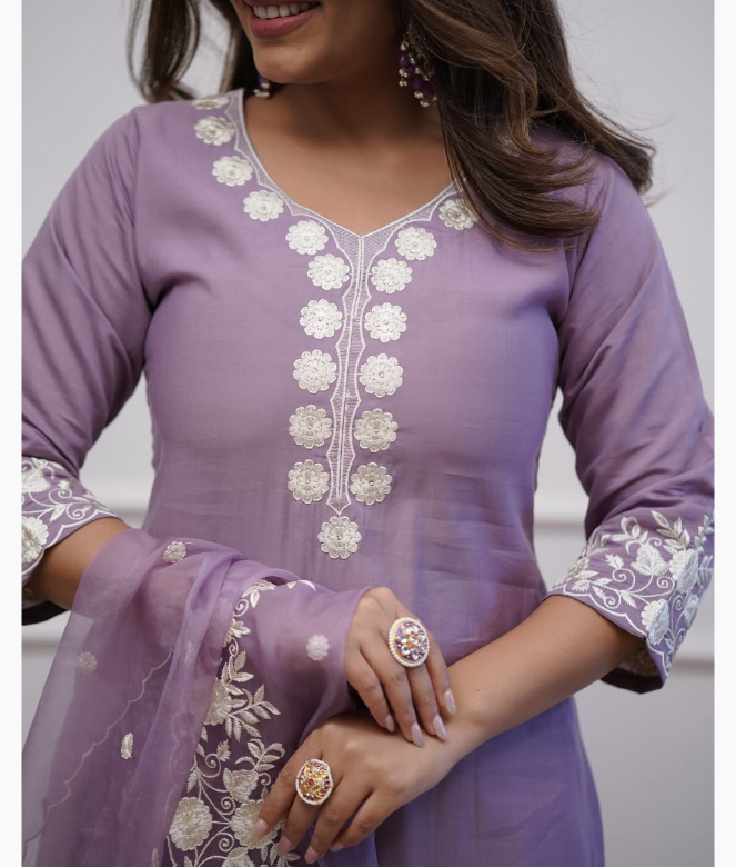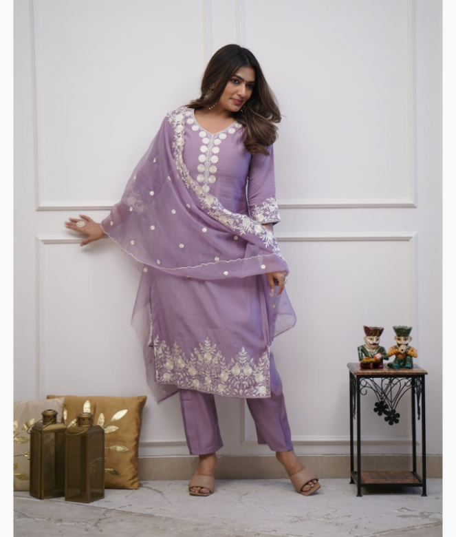 In summary, our Cotton Pant Set with an organza dupatta and exquisite embroidery work is a must-have for any fashion-savvy woman. With its perfect blend of comfort and style, this outfit is designed to make you feel beautiful and confident. Embrace your elegance and enhance your wardrobe with this stunning ensemble, perfect for any occasion. Step out in style and let your outfit speak volumes about your unique fashion sense!