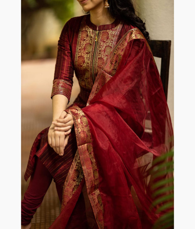 Introducing our stunning cobalt blue cotton lurex kurta with a stylish super collar neck—an essential addition to every wardrobe! This elegant kurta pairs beautifully with straight pants, creating a sleek silhouette. The organza dupatta adds a touch of richness and sophistication, making it perfect for any occasion. Don’t miss the chance to elevate your look with this chic ensemble!