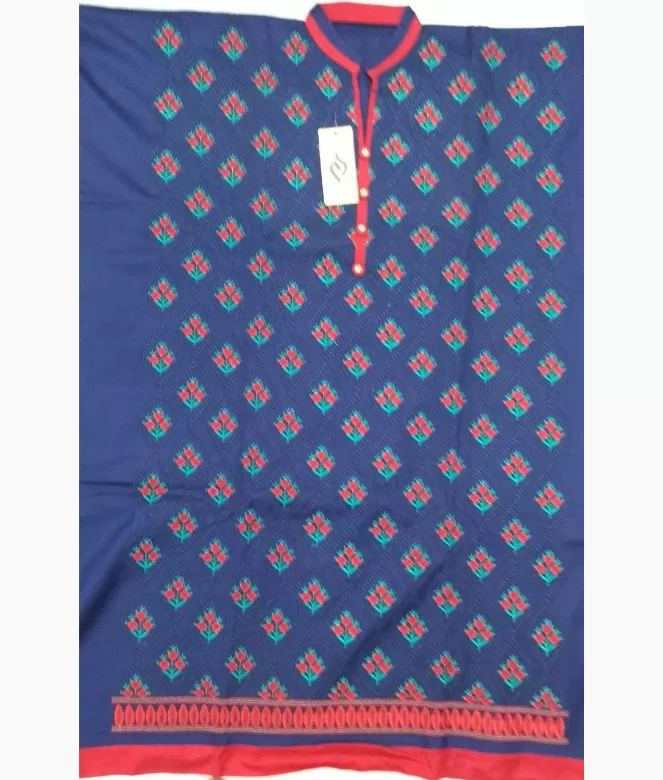 Presenting this another elegantly designed suit made up of top quality woollen. The suit is allured with heavy thread jaal on the upper wear and collar neck. The red colour bottom enhances the beauty of the suit. Get it stitched as per choice.