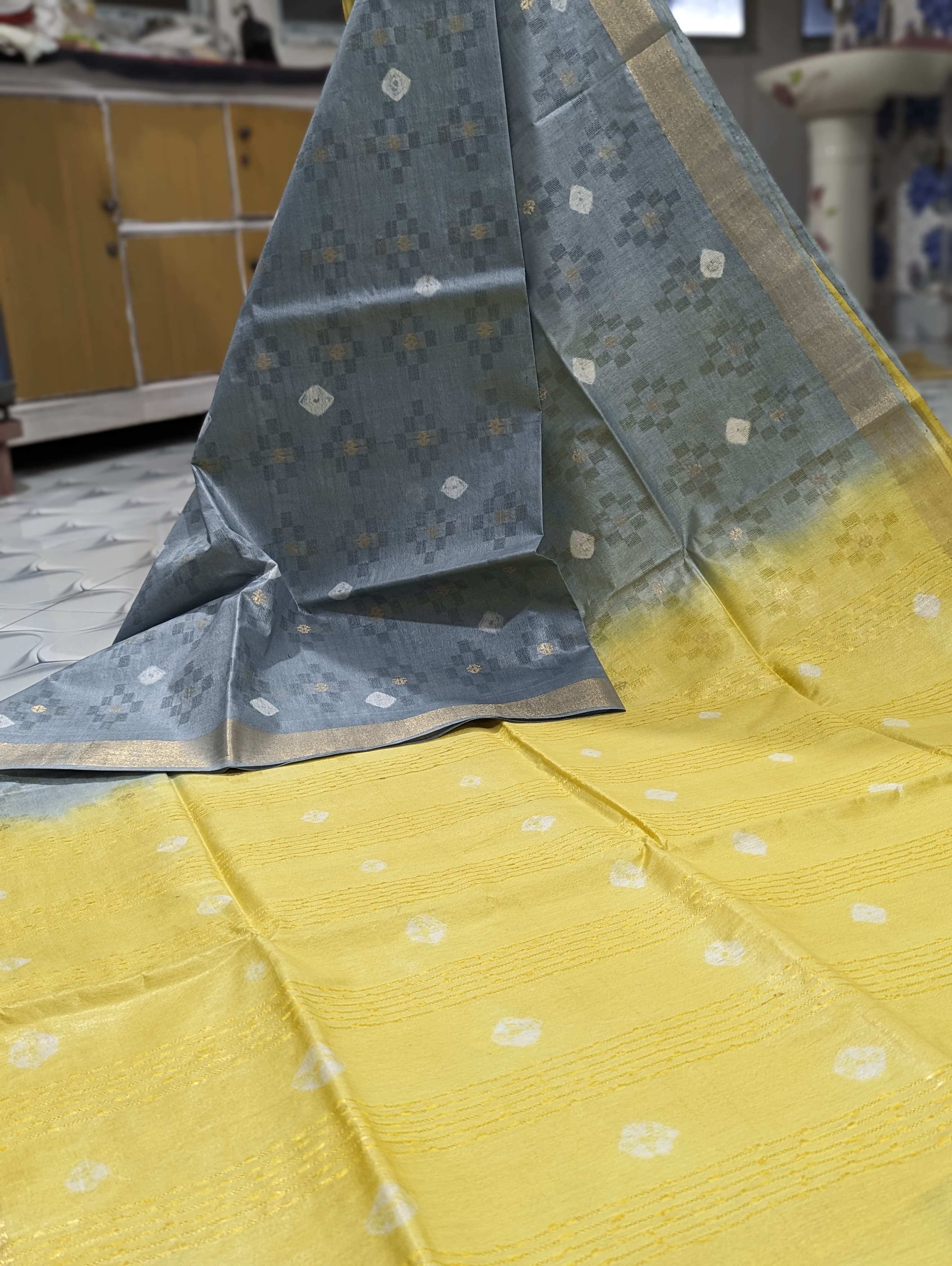 A beautifully crafted semi-silk saree collection embodies a blend of luxurious silk with the comfort and versatility of other fibers.