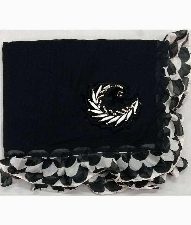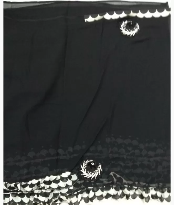Black Saree Party Wear Black White Georgette Saree Sapar2115