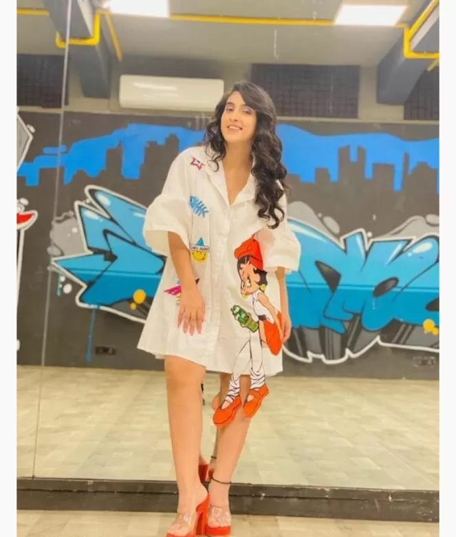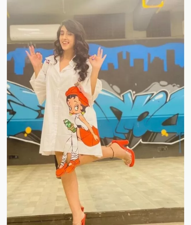 This attractive dress is in a shirt style with a doll print on a single side of the dress. This is an exclusive price from our collection, which can be paired with any bottom wear and worn as a one-piece dress. The dress is available in a single color