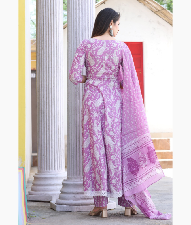 Elevate your style with our Charming Purple Cotton Stitched Embroidery Suit Set. Crafted from soft, breathable cotton, this suit features exquisite embroidery that adds a touch of elegance and sophistication. The rich purple hue is perfect for making a statement, whether it's a casual outing or a festive occasion. With its comfortable fit and intricate detailing, this suit set combines tradition with modern flair, making it an essential addition to your wardrobe. Embrace effortless beauty with this stunning ensemble!