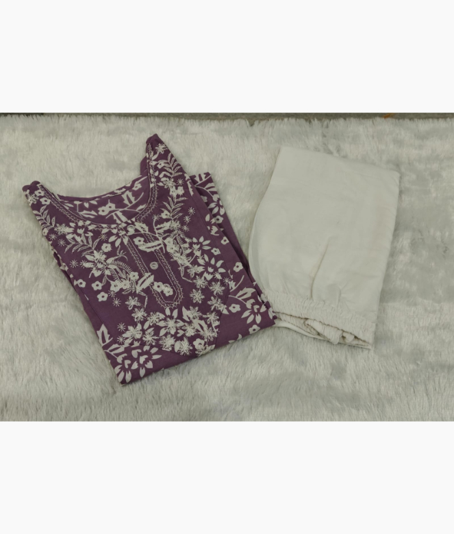 Elevate your daily wear with our Charming Purple Cotton Stitched Kurti with Pant Collection. Crafted from soft cotton, it offers comfort and style for any occasion.