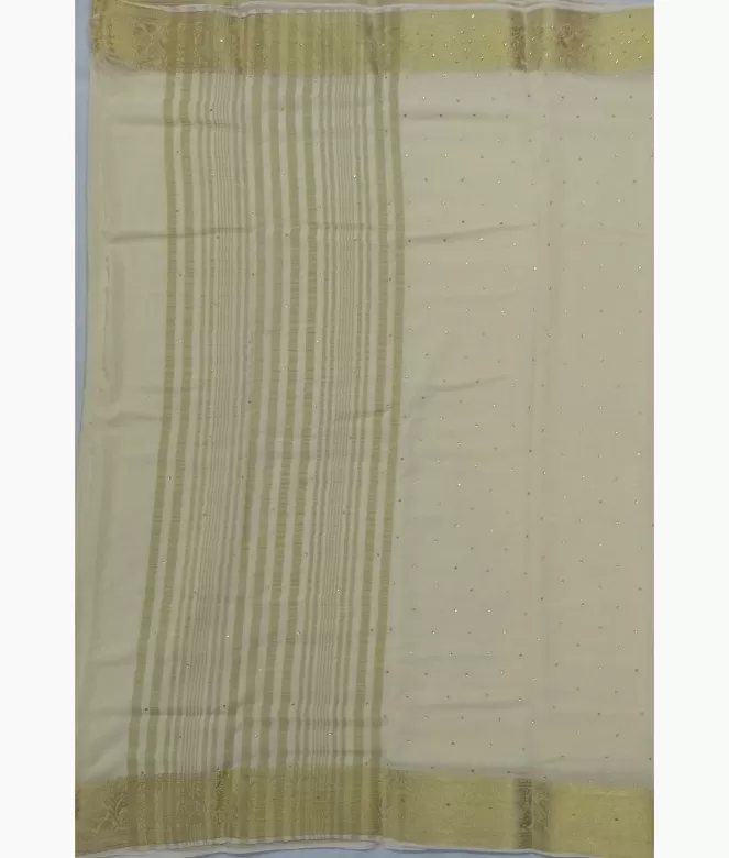 Border is of heavy zari design of animal and bird with sequence work on saree. Matching same border of saree is on blouse patti for neck and sleeves.