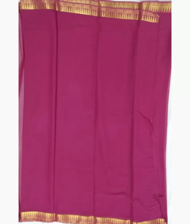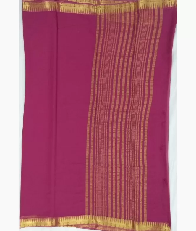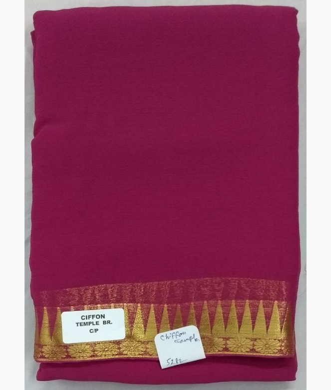 All over plain border pallu design saree. Plain chiffon saree with golden colour strips design on pallu.