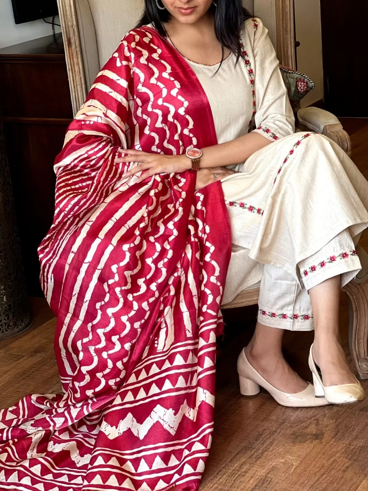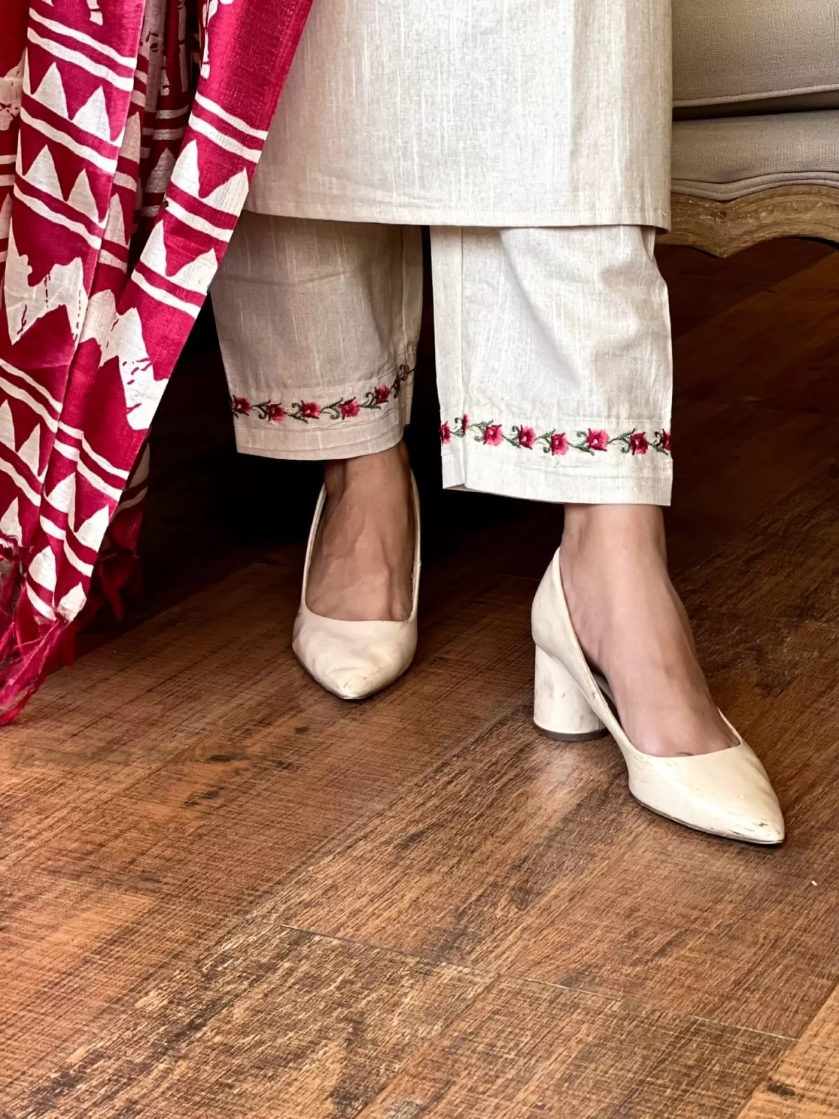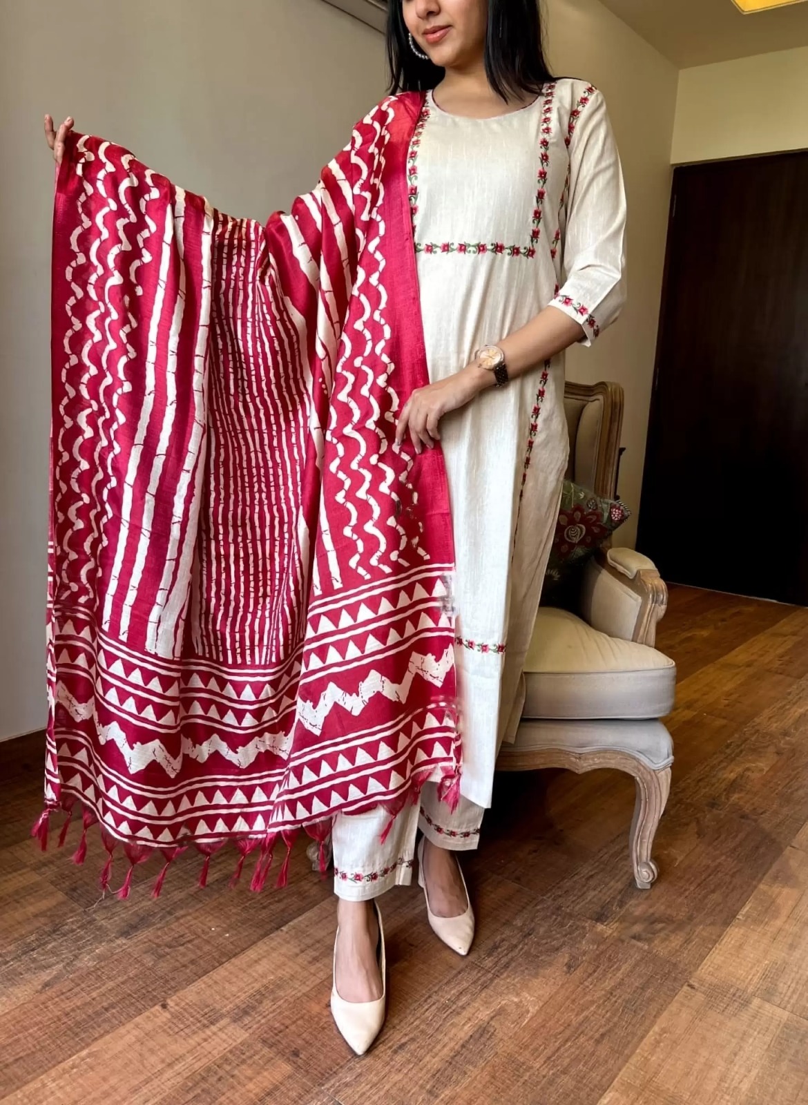 This cotton embroidery suit set is absolutely stunning. The fabric is soft and breathable, perfect for warm weather.