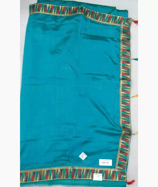 All over plain pallu border designer palton saree. Plain pallu with multicolour border patti and latkans on saree.