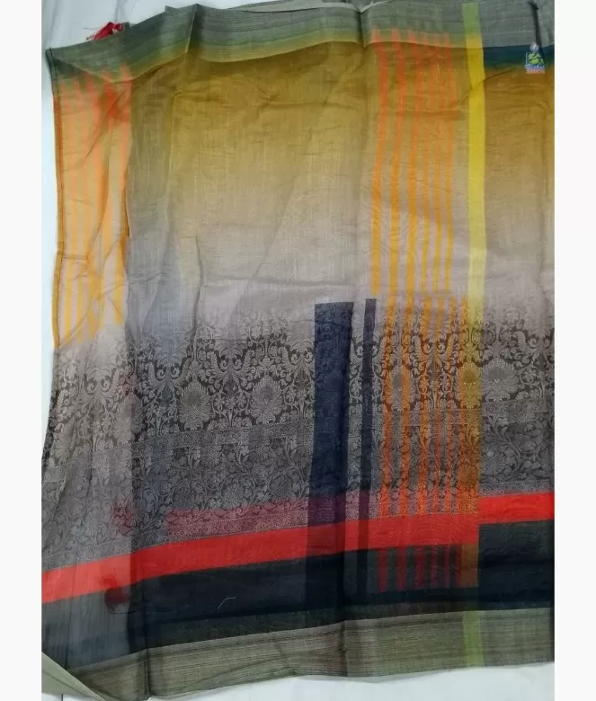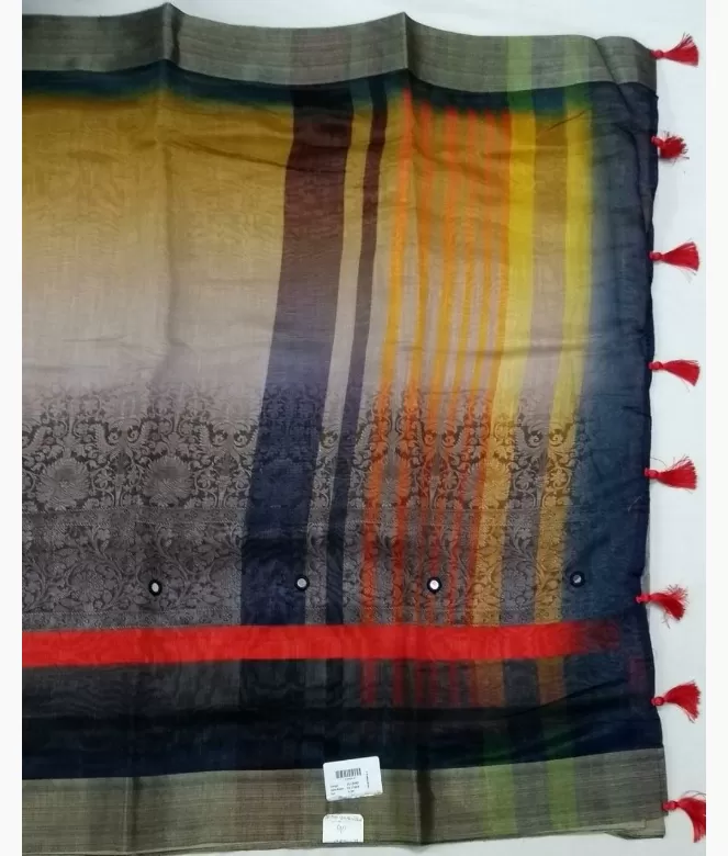 Pallu is of mirror work with latkan fine silver zari patti on border. Matching work of saree is on running blouse for neck and sleeves
