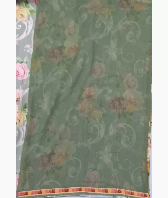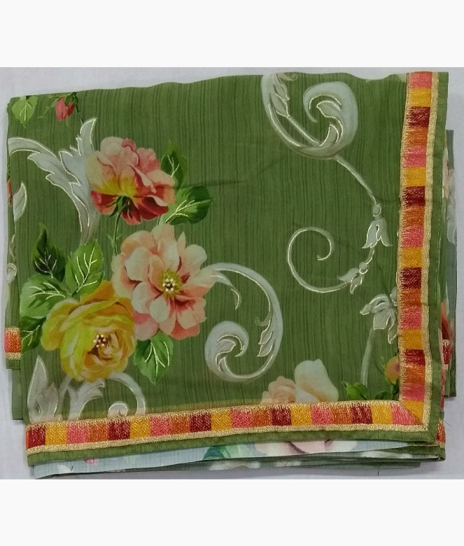 Border is of multi colour thread weaving with piping surrounding all over on saree. Matching same border of saree is on blouse patti for neck and sleeves in plain fabric.