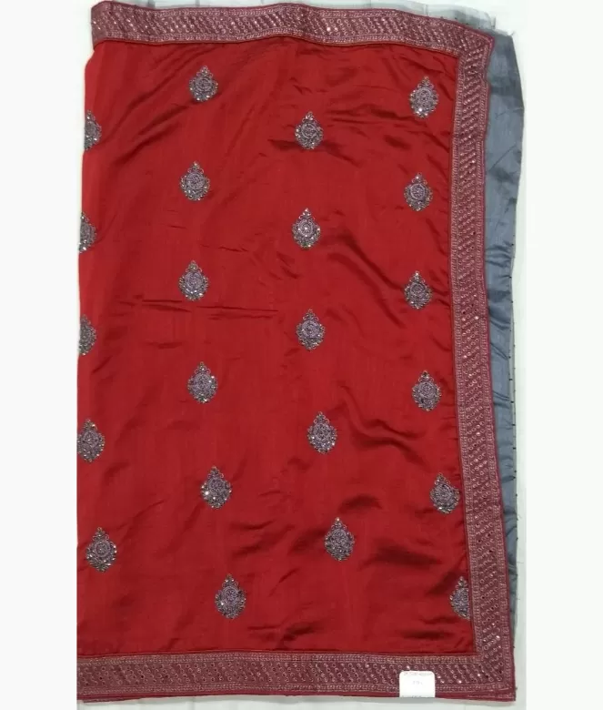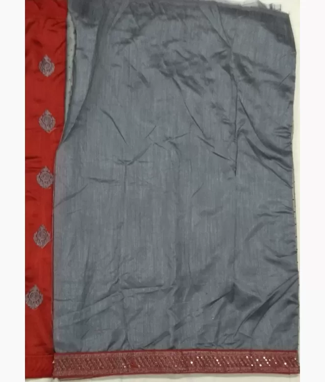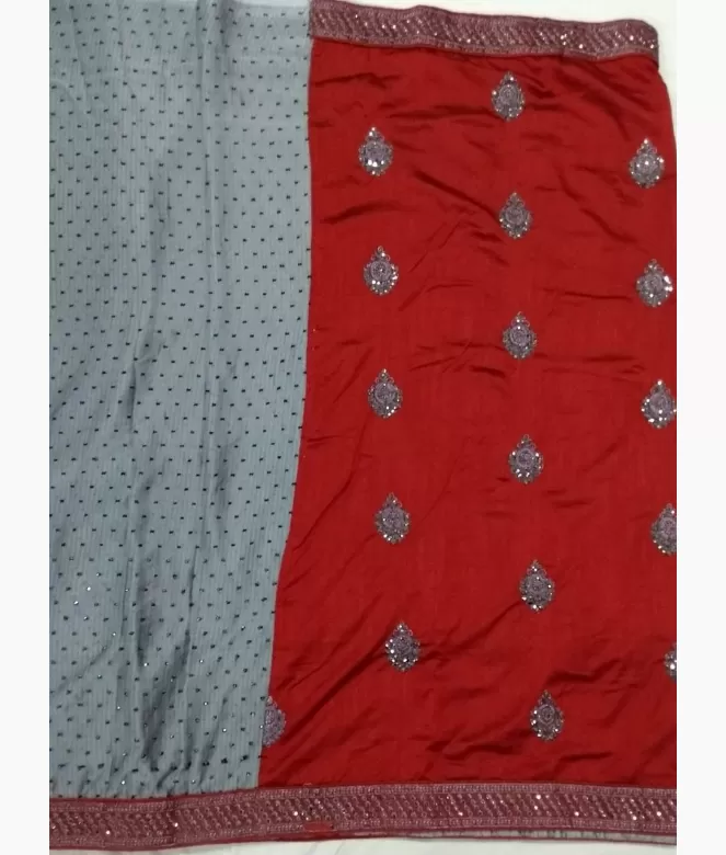 Mehroon Grey Saree Party Wear Mehroon Grey Georgette Dupion Silk Saree Sapar2110