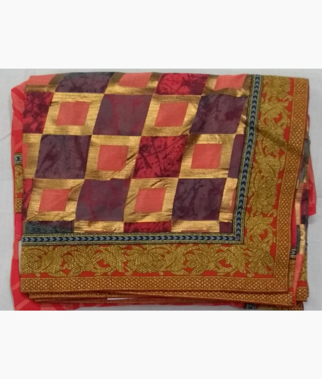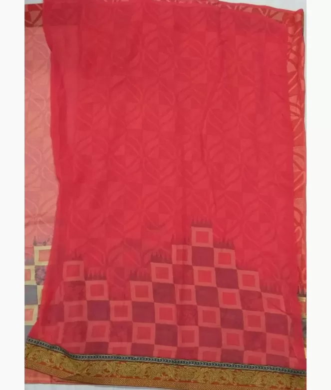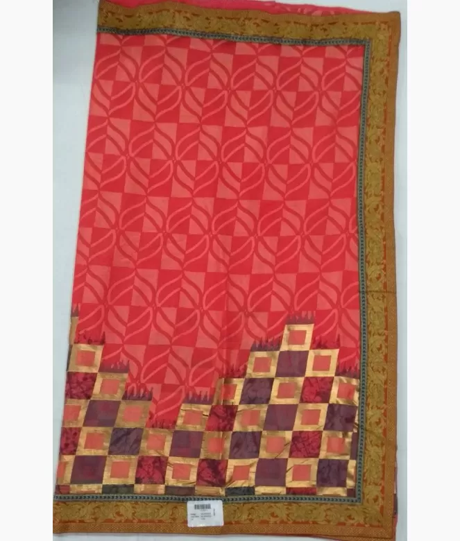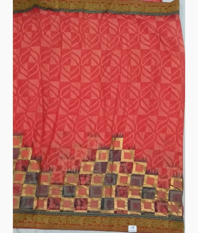 Border is of leaf flower design of weaving jaal on saree. Matching work of saree design and border is of blouse for neck and sleeves.