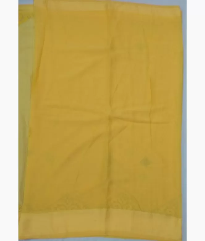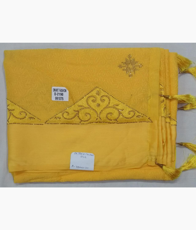 Heavy self colour thread with sequence work on panel. Border is of satin patta. Blouse is of same matching same colour border of saree.