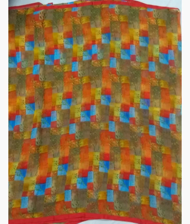 All over multi colour printed saree with tree design in multi colour check box's on saree.