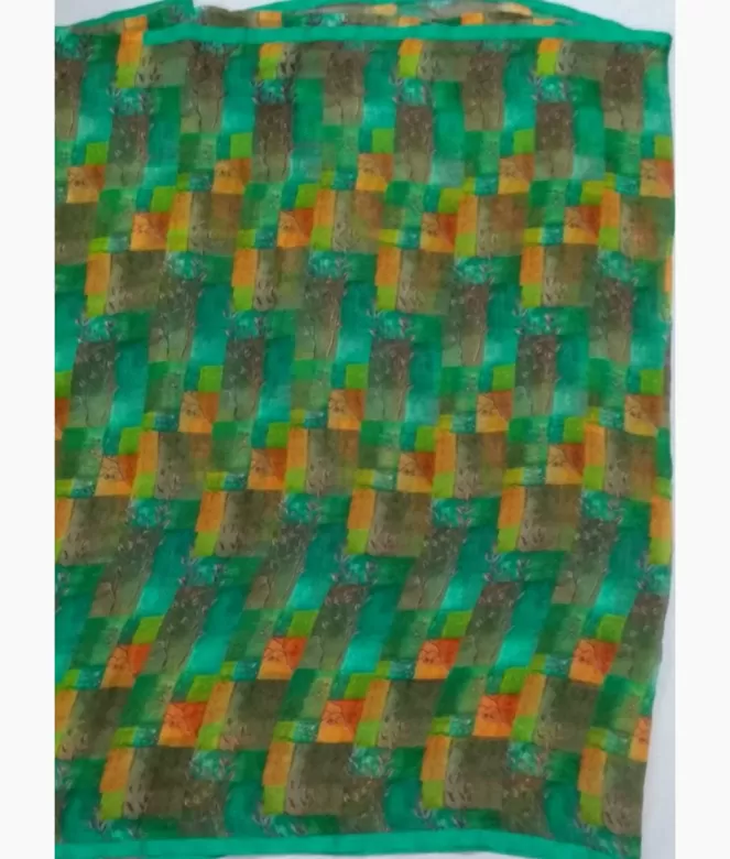 All over multi colour printed saree with tree design in multi colour check box's on saree.