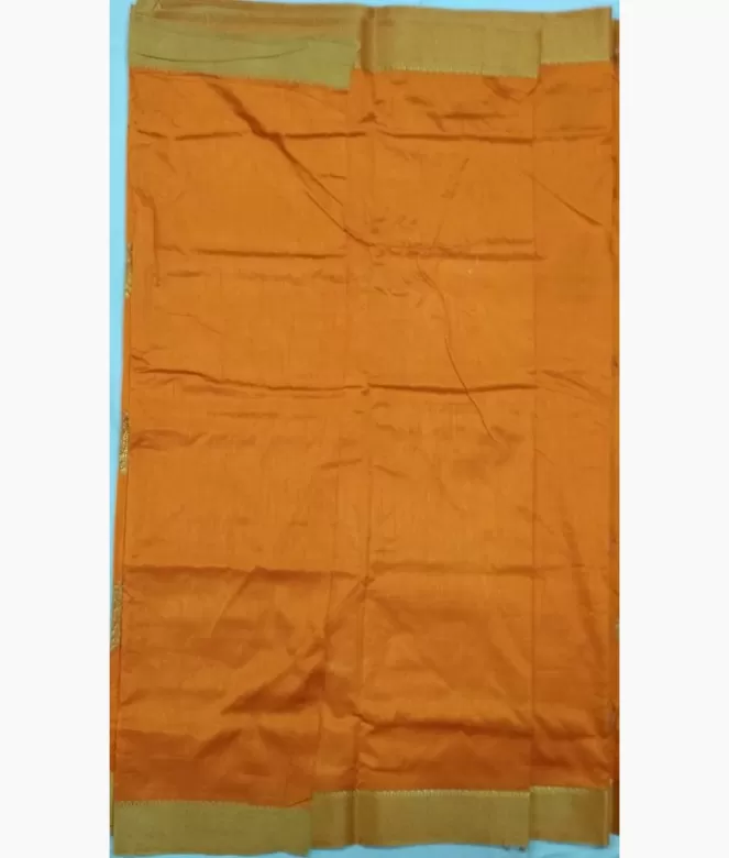 Border is of golden colour zari Patti design on saree. Matching same border of saree is on blouse patti for neck and sleeves.