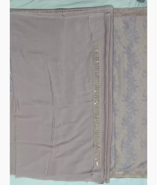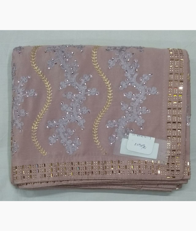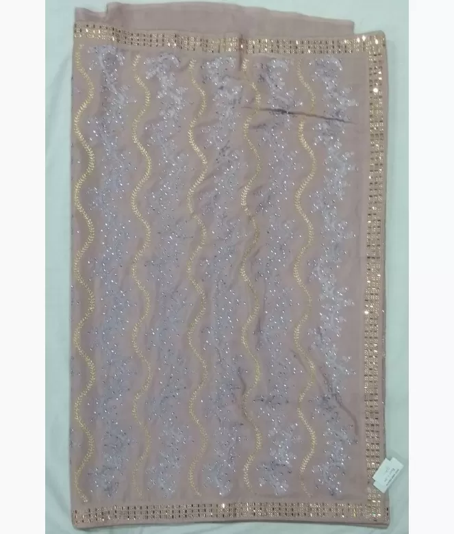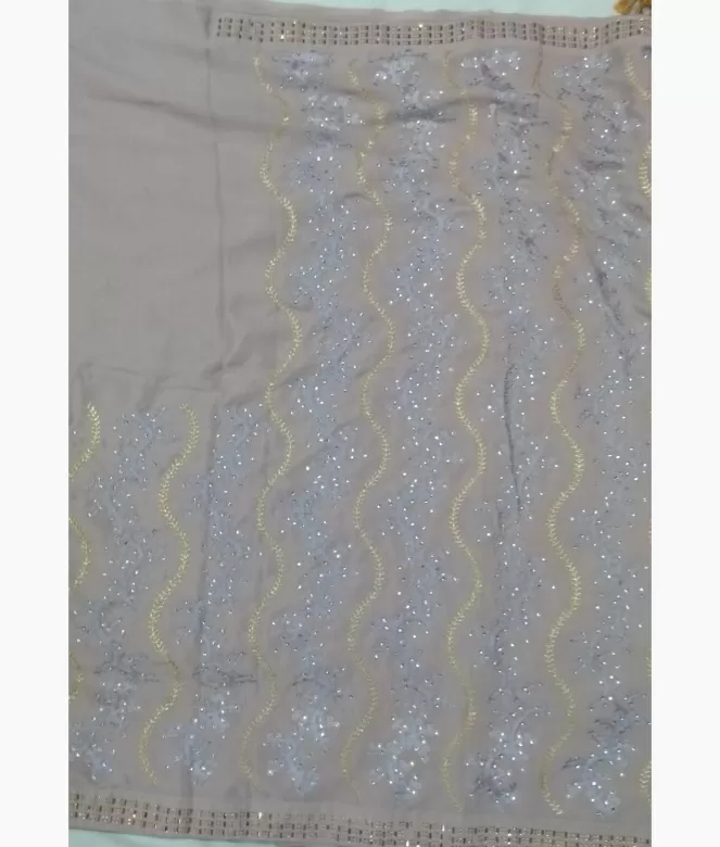 Heavy work on all over saree with thread, zari and sequence work. Border is of mirror and sequence work on saree. Matching work of saree is on blouse border patti for neck and sleeves.