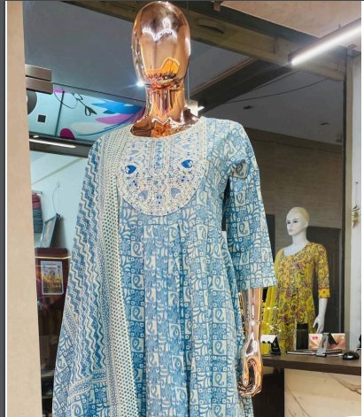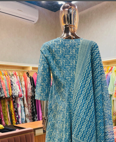 An attractive Anarkali cotton suit set is a perfect blend of traditional craftsmanship and contemporary style, making it a popular choice for weddings, festivals, and other special occasions.