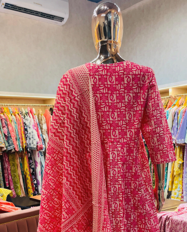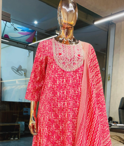 An attractive Anarkali cotton suit set is a perfect blend of traditional craftsmanship and contemporary style, making it a popular choice for weddings, festivals, and other special occasions.