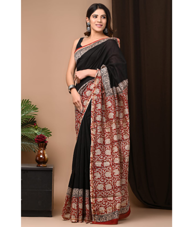 Fabric : Chanderi Silk Work : Hand Block Printed Size ; 5.5 m saree, 0.80 m blouse piece