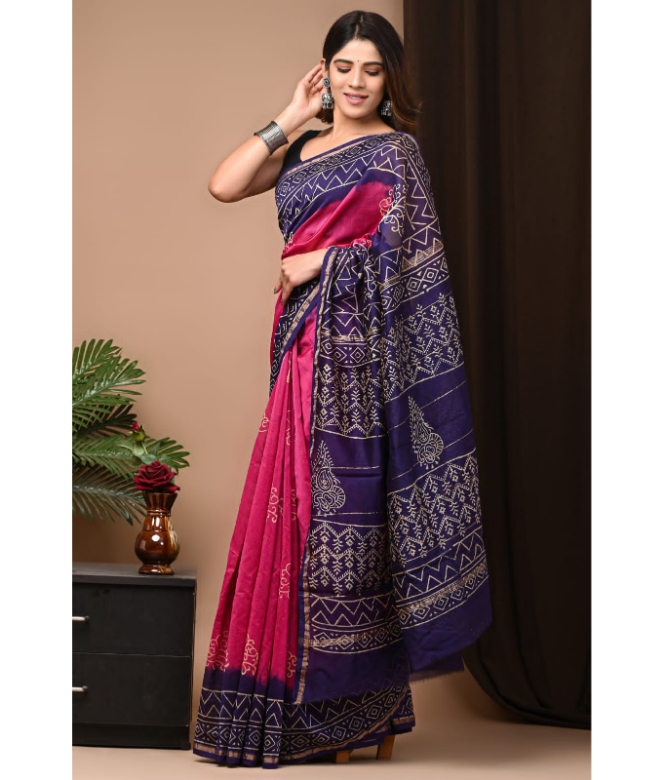 Shine This Festive Season With Our Traditional Hand Block Printed Chanderi Silk saree.