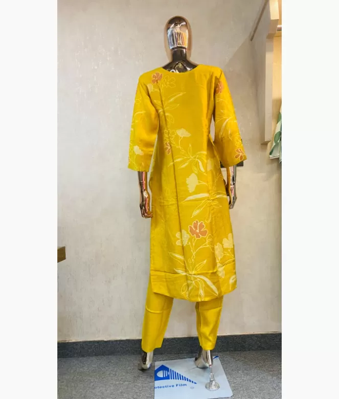 Elegant Stitched Yellow Embroidery Straight Suit Set