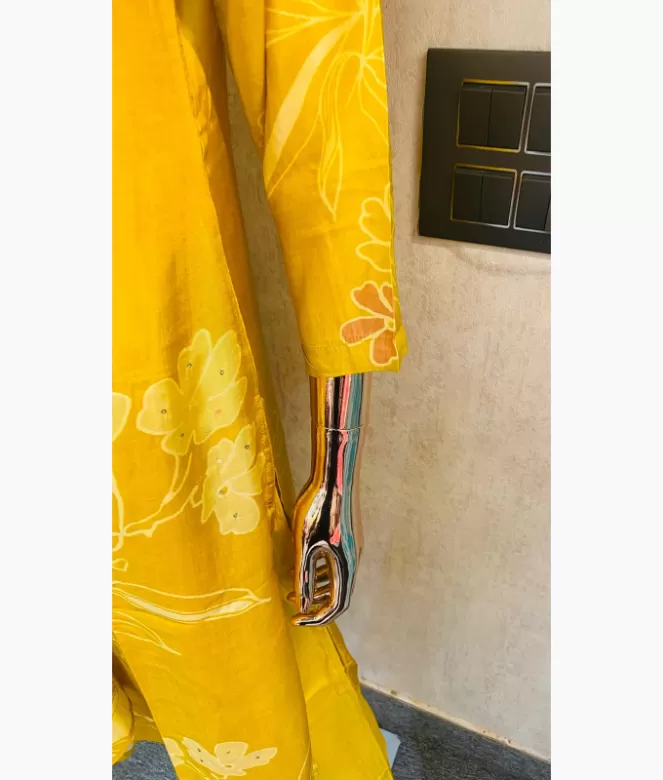 Chic yellow cotton straight suit set with elegant embroidery. Perfect for daily wear, offering a blend of comfort and refined style.