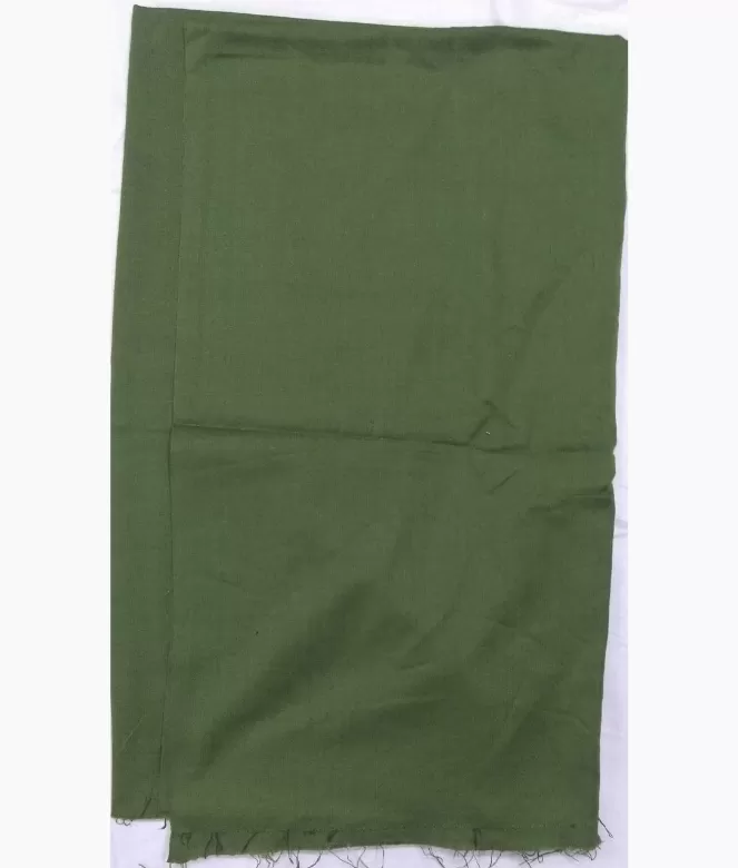 Heavy neck work of thread in green and cream colour with small flower boota design on front of shirt back is plain contrast colour green bottom cream stole on suit.