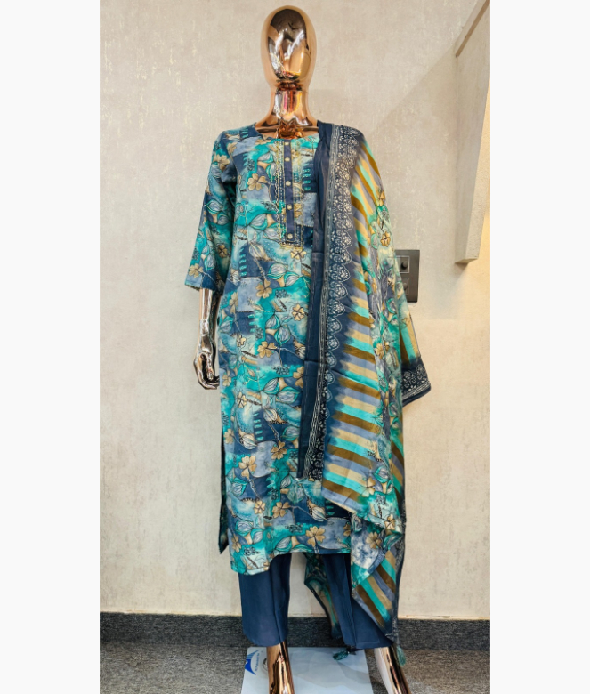 Step into style with our Glorious Blue Cotton Stitched Straight Suit Set, designed for the modern woman. Made from high-quality cotton, this suit is not only comfortable but also visually stunning. The deep blue color is perfect for any season, and the exquisite embroidery elevates its appeal, making it a standout piece in your collection. Whether you're attending a festival event or a casual gathering, this suit ensures you look chic and polished. Embrace versatility and elegance with this must-have attire!
