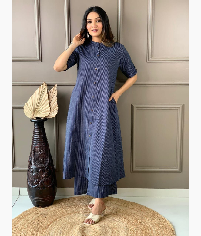 Discover effortless elegance with the Glorious Blue Cotton Co-ord Set. Made from high-quality cotton, this set offers both comfort and style in a vibrant blue hue that enhances your everyday wardrobe. Perfectly designed for daily wear, it features a sleek and versatile co-ord style that can be dressed up or down. Whether you're heading to work or a casual outing, this dress material ensures a chic, polished look. Enjoy the blend of classic design and modern sophistication with this must-have ensemble.