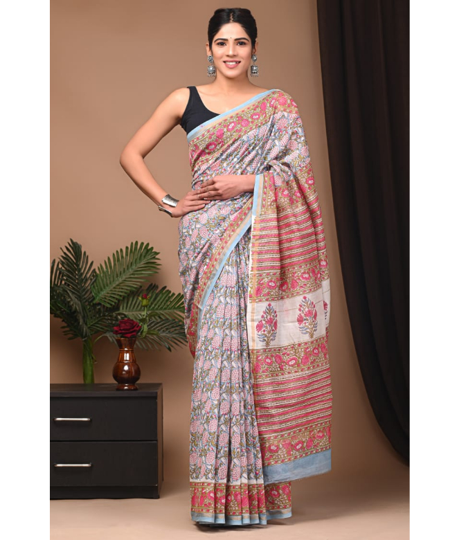 Shine This Festive Season With Our Traditional Hand Block Printed Chanderi Silk Saree