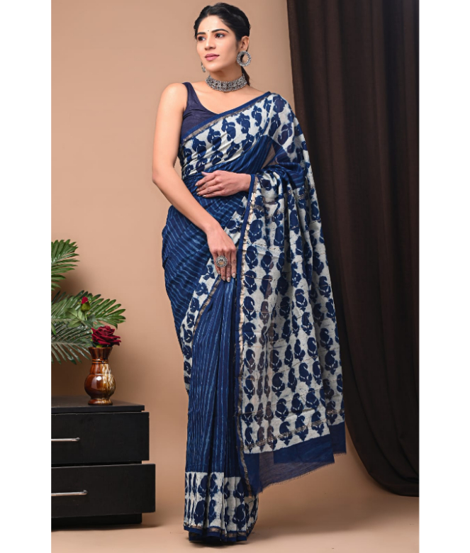 Shine This Festive Season With Our Traditional Hand Block Printed Chanderi Silk Saree