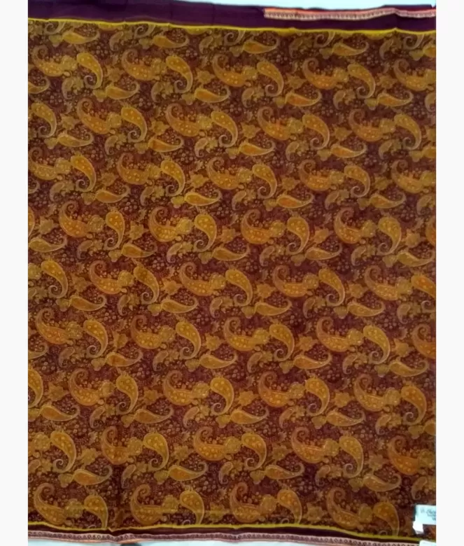 All over matching colour ambi flower print design on saree. Big ambi and strips design on pallu.
