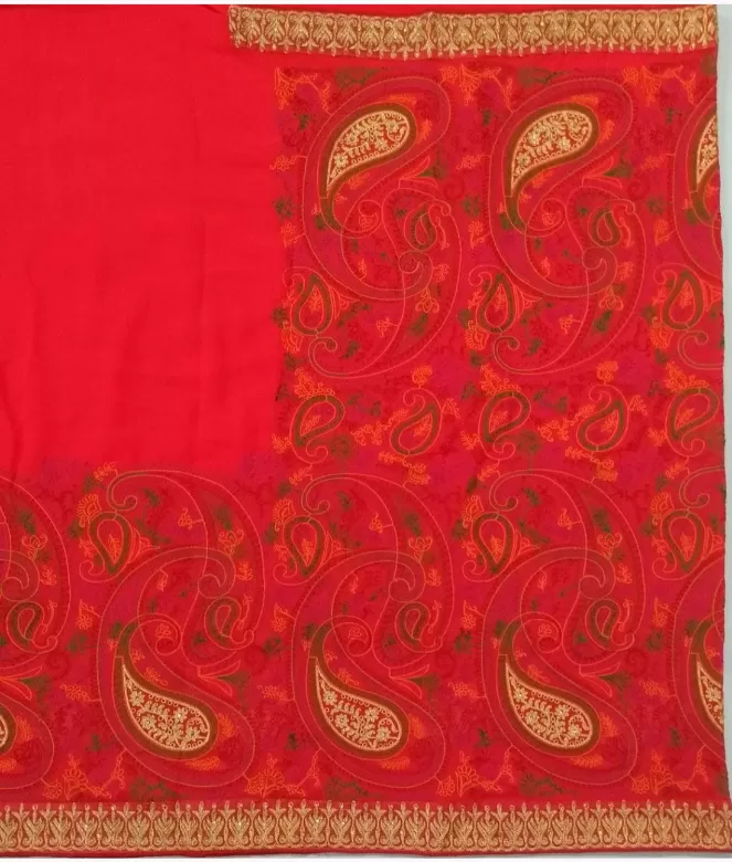 All over multi colour thread jaal ambi design on saree. Fine quality of kashmiri thread work on all over saree.