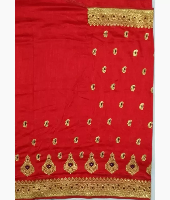 Red Saree Bridal Wear Red Dupion Silk Saree Sawed212