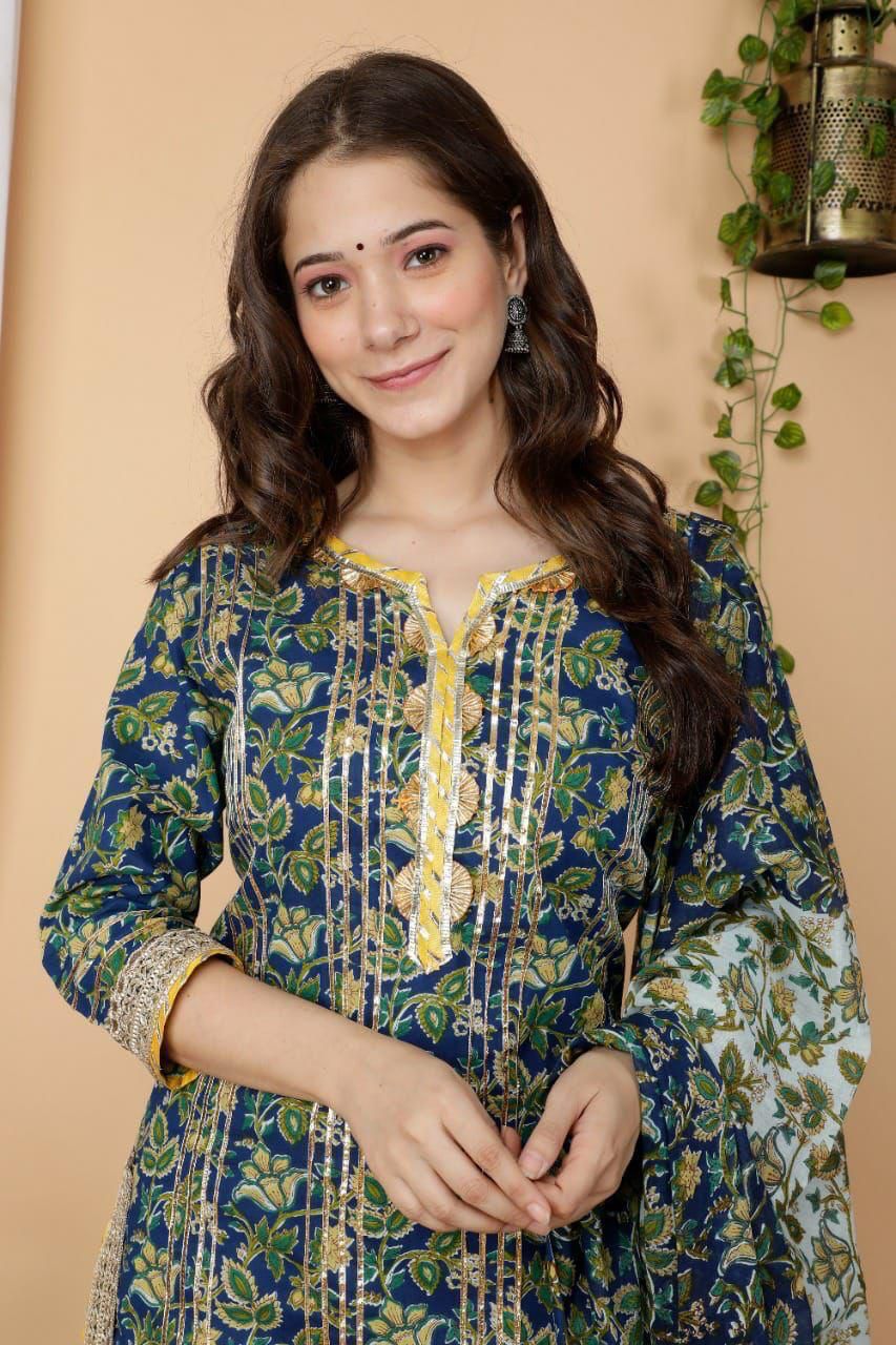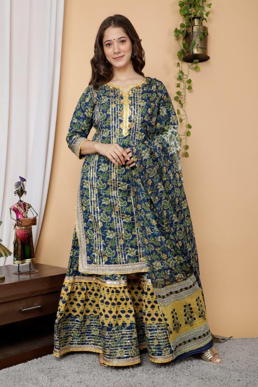 Fabulous Stitched Cotton Blue Sharara Suit Set