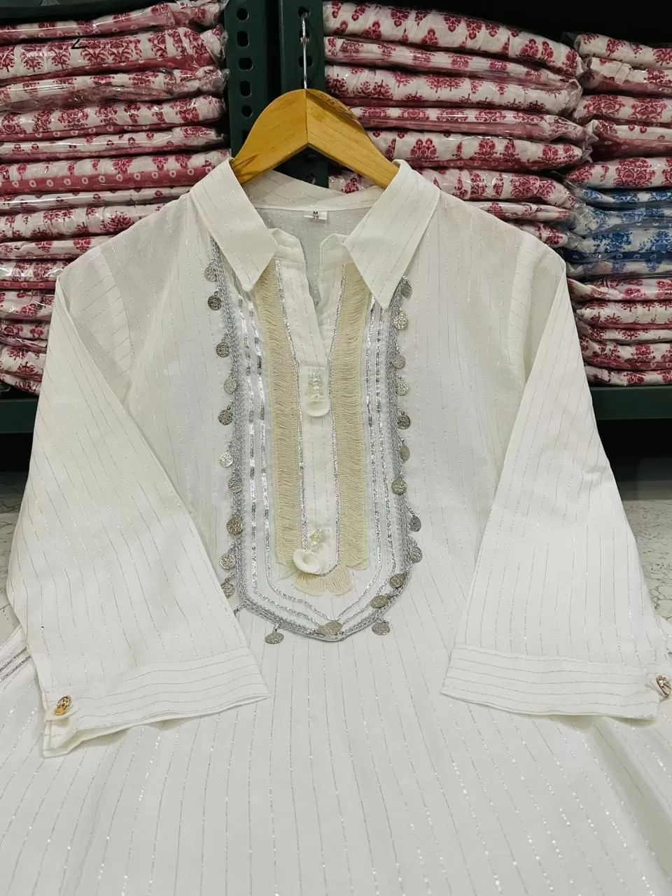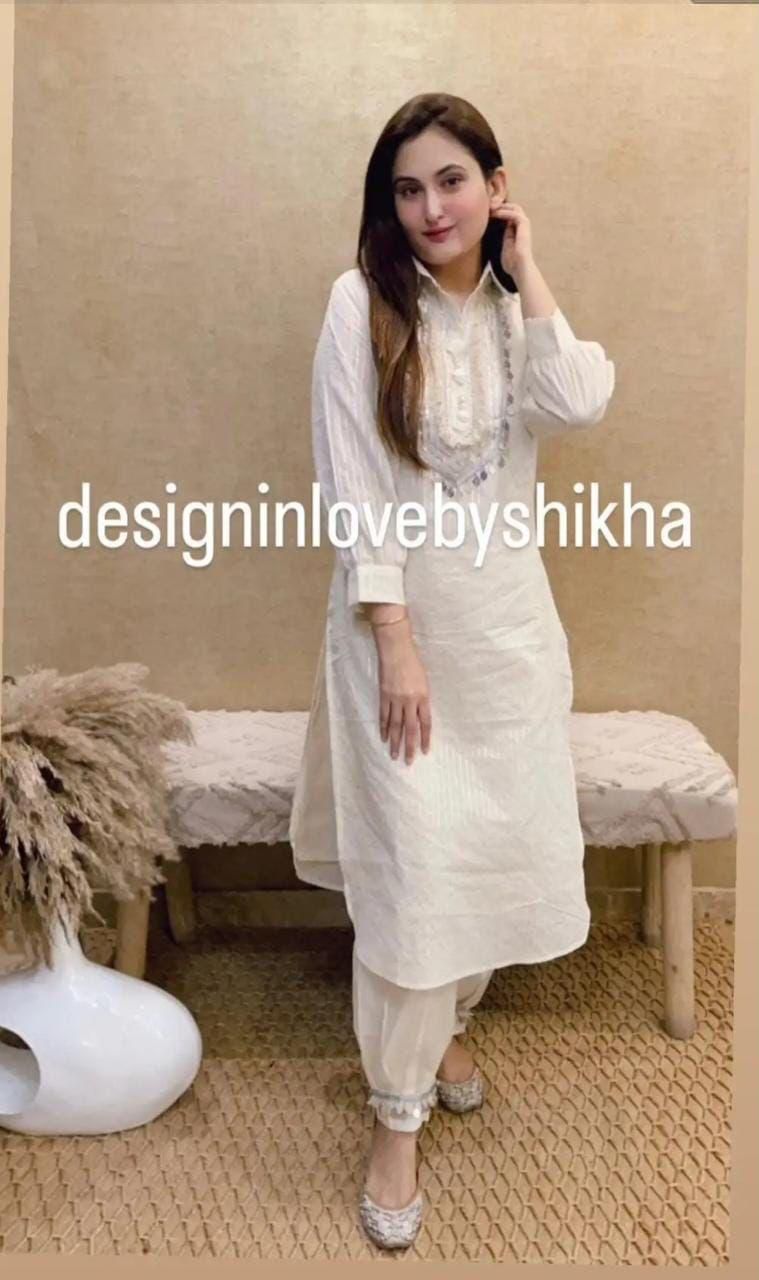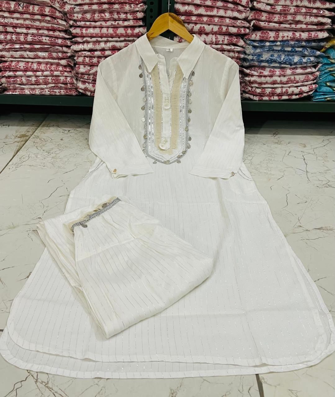 Premium Rayon Kurti with designer Afghani Salwar with amazing Coin Lace attached at the Kurti yoke and at the bottom of the Salwar