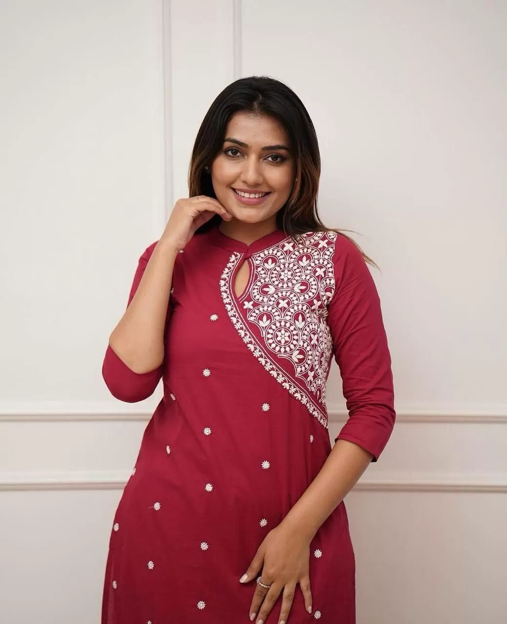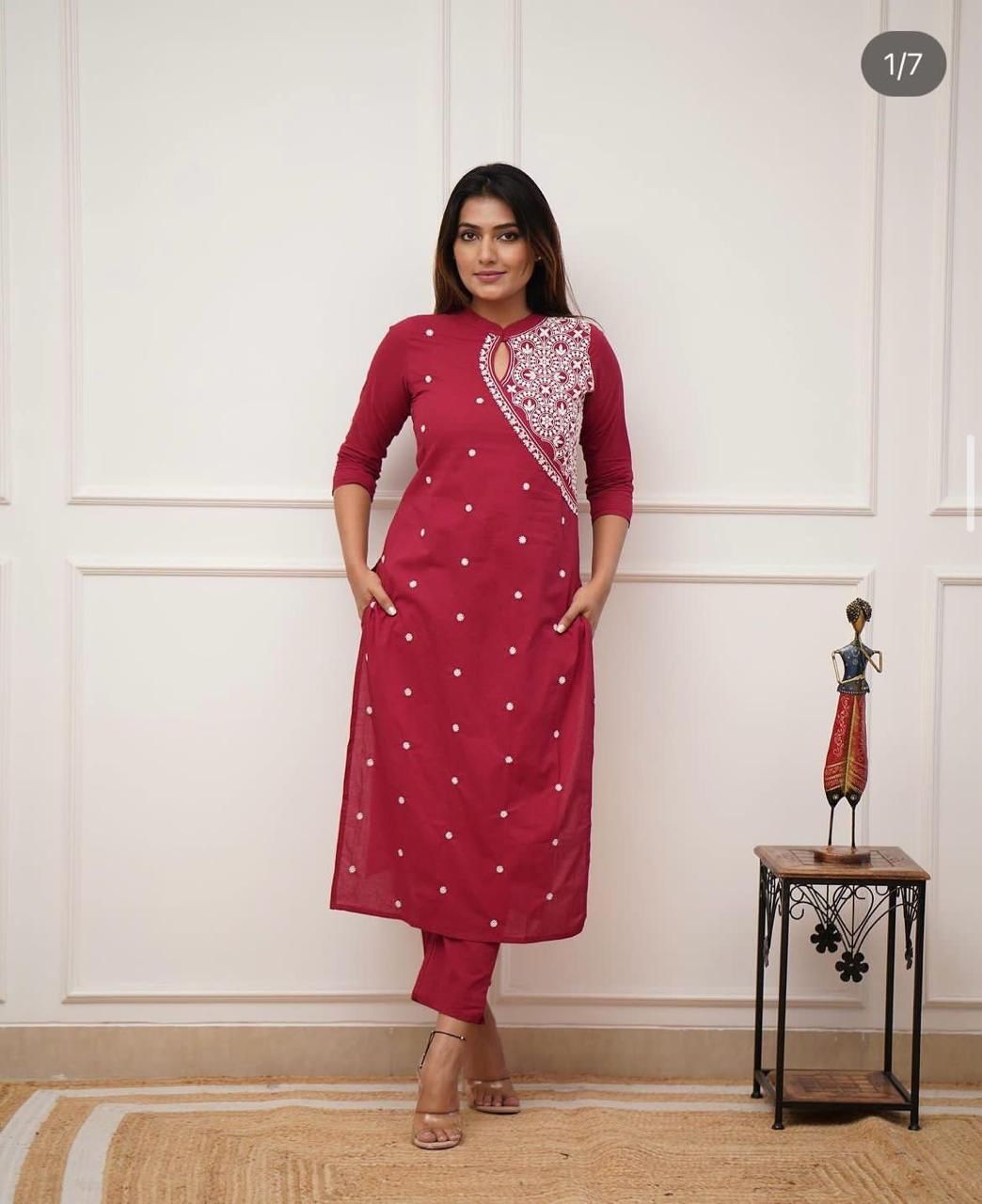 Beautiful Cotton 60.60 Kurti and Pant with  embroidery work